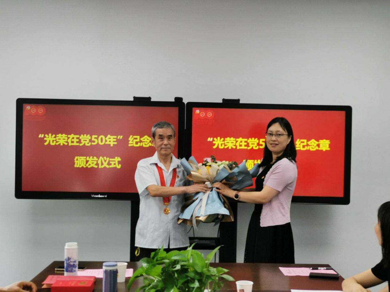 一百年浩浩荡荡,五十年不改初心。在中国共产党成立100周年之际,党中央启动了“光荣在党50年”纪念章颁发工作,直播 姜亚光和张耀明两位老党员获此殊荣。6月28日上午,学院党委在激光楼311会议室举行了简朴庄重的“光荣在党50年”纪念章颁发仪式,为直播 党龄满50周年的老党员颁发纪念章。张耀明作为老党员代表出席了颁发仪式。学院党委书记龚呈卉首先向直播 老党员致以崇高敬意和诚挚问候,并向张耀明颁发“光荣在党50年”纪念章。