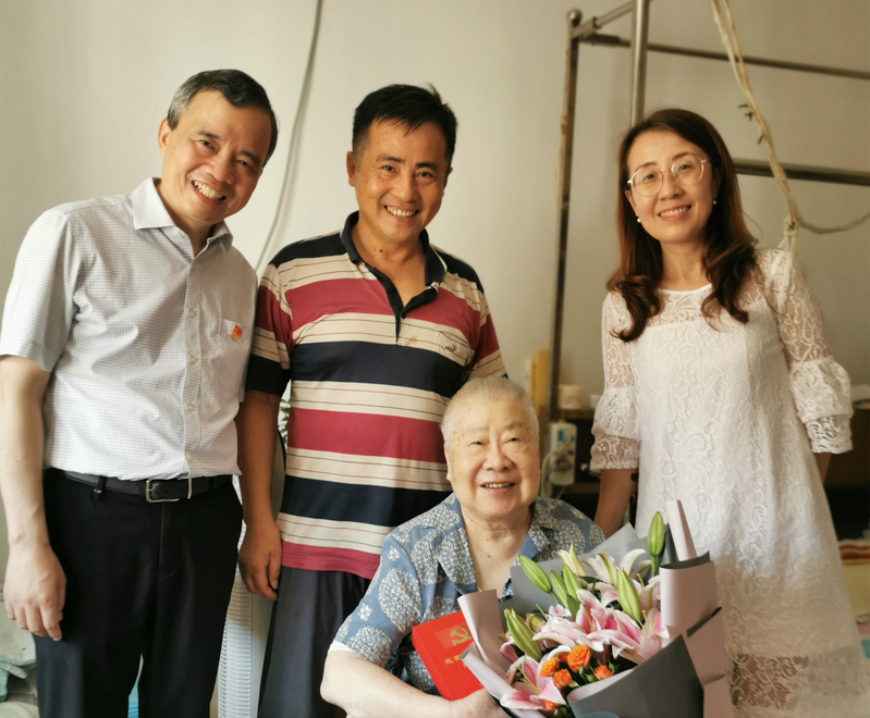 对于因年事已高、身体不便未能出席颁发仪式的老党员、老专家姜亚光,学校副校长沈明荣带队上门慰问并颁发纪念章,送去了党组织的关怀与慰问。